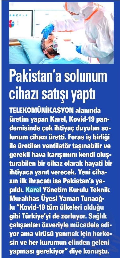 Akşam - 11.01.2021 - Pakistan'a Solunum Cihazı Satışı Yaptı