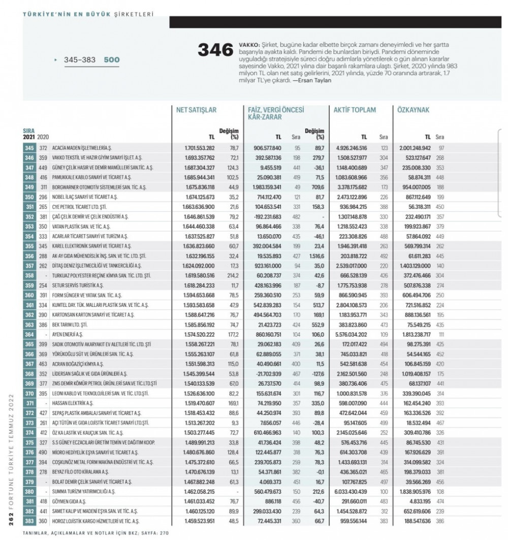 Fortune 500 - 01.07.2022 - Türkiye'nin En Büyük Şirketleri