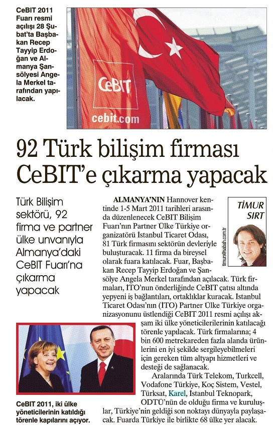 Sabah - 28.02.2011 - 92 Türk Bilişim Firması Cebit`e Çıkarma Yapacak